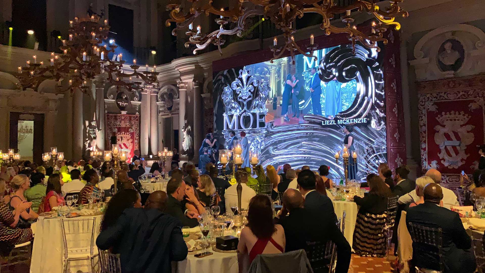 Eventi-X group provided a complete service for this memorable event called “MOE Toscana”. We built the scenography, did the audio, lighting, video and projection. Using n°2 Watchout servers and the “Ascender32 4K” we brought amazing live graphics and animation to a large LED screen which was 8mt x 4mt in size.