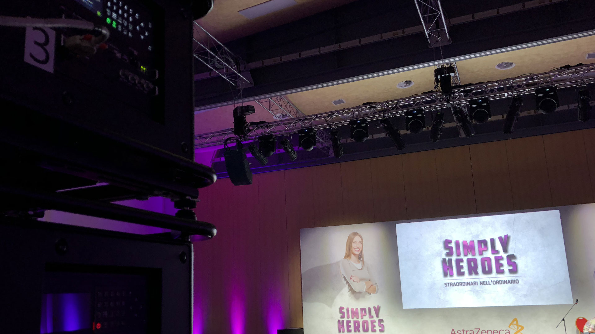 Working for Kaos Lab, the much-respected Italian events agency, we provided the projection, sound system and emotional lighting for the recent Astra Zeneca event, “Simply Heroes”, held at the Marriott Park Hotel in Roma.